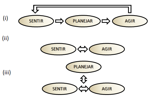 Figura 1 – Paradigmas na robótica: (i) hierárquico, (ii) reativo, (iii) híbrido (SIMÕES et al., 2006).
