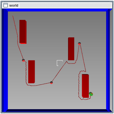 Após a implementação dos sistemas de fuzzificação, motor de inferência e defuzzificação, bem como a implantação do conjunto de regras elaboradas, iniciou-se a etapa de simulação. O código-fonte do simulador Simbad foi modificado para que a rota realizada pelo robô seja exibida em tempo de simulação. Possibilitando, dessa forma, a visualização do percurso realizado.